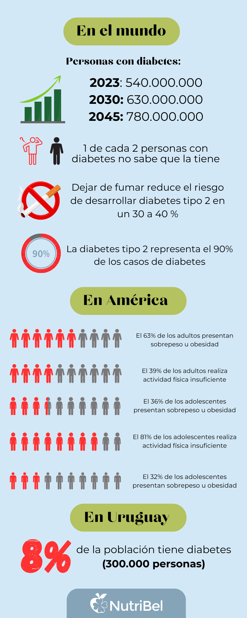 En el mundo 1 de cada 10 personas tiene diabetes (según estudios de la Federación internacional de diabetes) y para el año 2045 se prevé que el 15% de la población mundial tenga diabetes debido a que en los últimos años se ha visto un incremento en sus factores de riesgo (principalmente sobrepeso, obesidad e inactividad física).